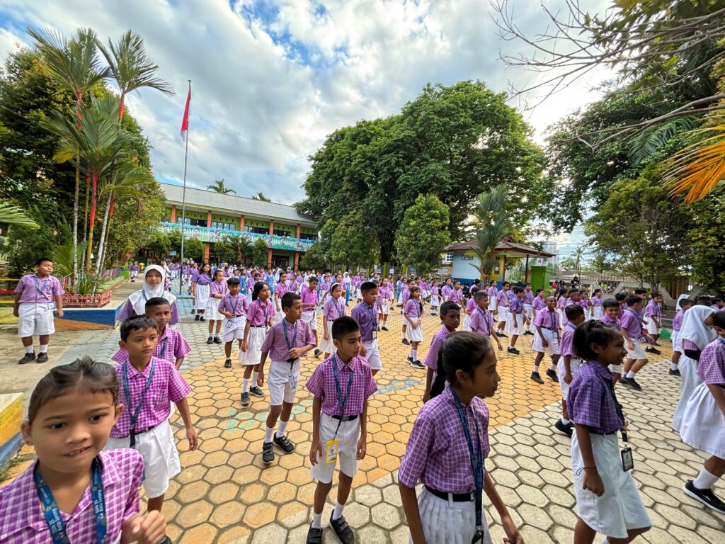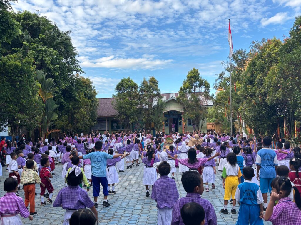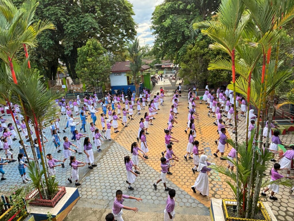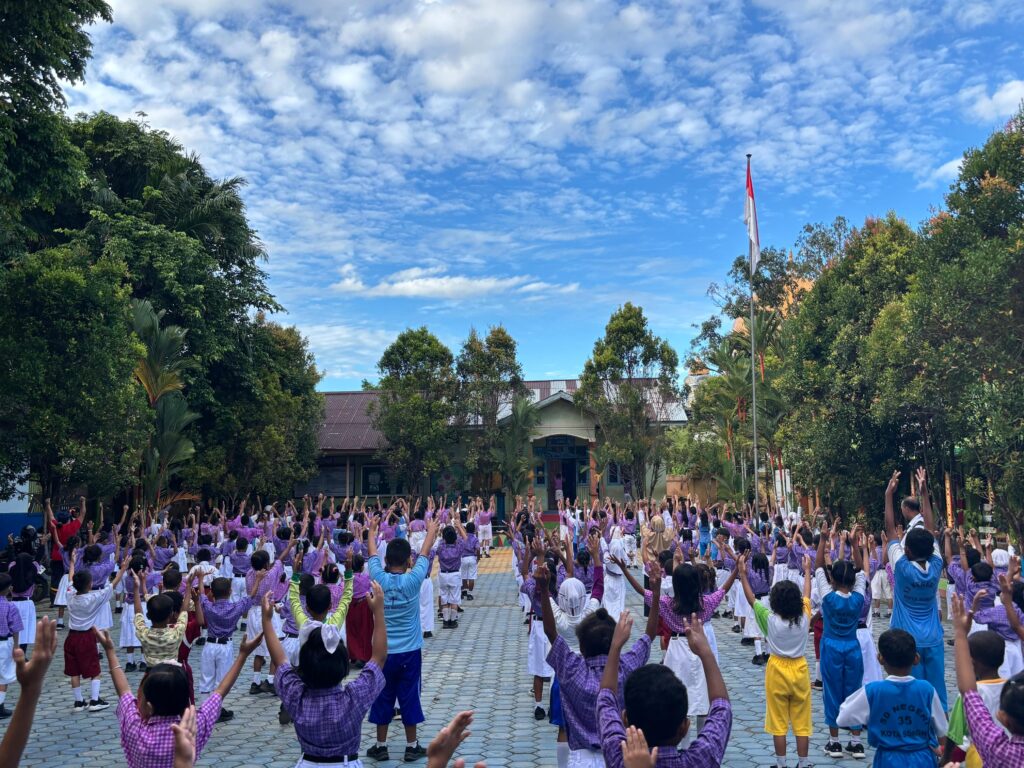 Sorong, 25 Juli 2025 — Upaya mendukung tumbuh kembang anak yang sehat dan kuat, SD Negeri 35 Sorong melaksanakan kegiatan “Senam Anak Indonesia Hebat vs Makanan Bergizi”. Kegiatan tersebut dilaksanakan di halaman sekolah pada hari Jumat, 25 Juli 2025. Selanjutnya, Kegiatan Senam Anak Indonesia Hebat vs Makanan Bergizi SD Negeri 35 Kota Sorong Yang merupakan Program Andalan